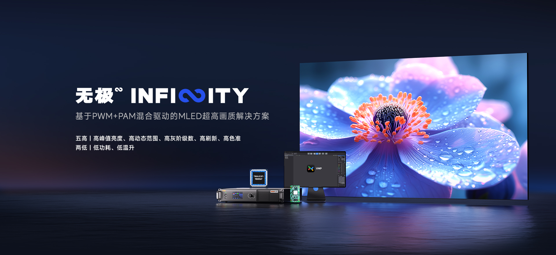 基于PWM+PAM混合驅(qū)動的MLED超高畫質(zhì)解決方案,通過控制系統(tǒng)、智能算法、全灰階校正與PWM+PAM混合驅(qū)動IC的深度融合,實現(xiàn)全鏈路技術(shù)突破,呈現(xiàn)非凡的顯示效果